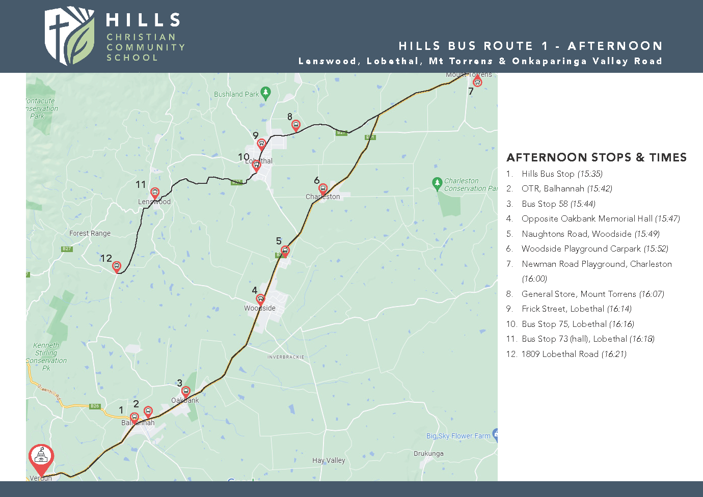 BUS ROUTE 1 – Birdwood, Mt Torrens, Lobethal & Onkaparinga Valley Road.
